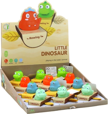 Das niedliche Aufzieh-Wasserspielzeug macht jedes Bad zum Vergnügen. Nach dem Aufziehen des unteren Mechanismus bewegt sich das Boot mit dem Dinosaurier dank der seitlichen „Ruder“ selbstständig auf der Wasseroberfläche. Das Spielzeug fördert die Fantasie, die Feinmotorik und bringt jede Menge Spaß in der Badewanne und im Pool. Es besteht aus sicheren Materialien, trägt die CE-Zertifizierung und erfüllt die Norm EN71.