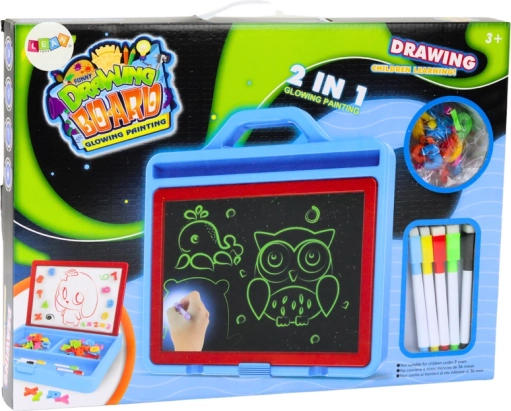 Diese große Zeichentafel ist ideal für kleine Künstler und Vorschulkinder. Sie bietet Zeichnen mit magischen, abwischbaren Markern und einem speziellen LED-Lichtstift, der Bilder in einem abgedunkelten Raum zum Leuchten bringt. Kinder können spielerisch erste Buchstaben, Zahlen und einfache Rechnungen ausprobieren.