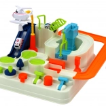Diese Bahn bietet neue Herausforderungen und viel mehr Emotionen bei jeder Fahrt, was sie zu einem perfekten Werkzeug sowohl für Unterhaltung als auch zur Entwicklung von motorischen Fähigkeiten, Kreativität und logischem Denken des Kindes macht. Ideal für kleine Auto- und Abenteuerliebhaber!