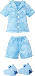 Blaue satinierte Pyjama, Pantoffeln in Bärenform