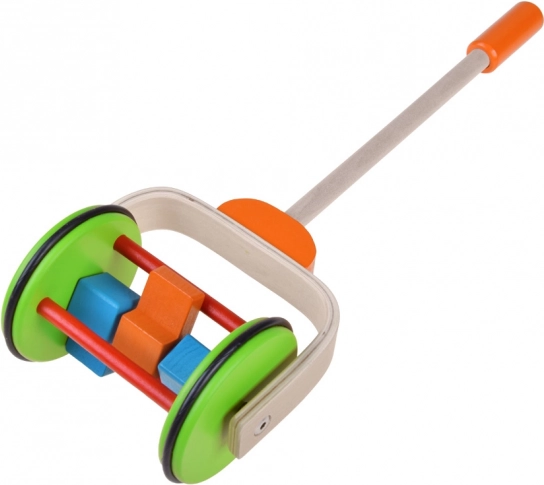 Buntes Holzspielzeug zum Schieben für Kinder, entwickelt motorische Fähigkeiten und sensorisches Wahrnehmen.