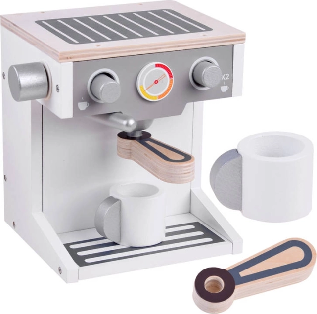 Geben Sie Ihrem Kind die Möglichkeit, ein kleiner Barista zu werden mit dieser charmanten Holz Kaffeemaschine. Aus hochwertigem Holz gefertigt, bietet sie nicht nur ästhetischen Genuss, sondern auch Sicherheit und Langlebigkeit. Die Kaffeemaschine ist mit interaktiven Elementen ausgestattet, wie drehbaren Knöpfen und Tasten für maximalen Spielspaß.