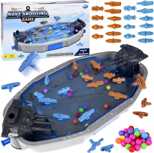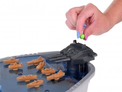 Drücken Sie einfach den blauen Knopf unter dem Schussturm, um die Kugeln abzufeuern, die wie aus einer Schleuder abgeschossen werden. Zeigen Sie Ihre Treffsicherheit, um die gegnerischen Schiffe aus dem Spiel zu nehmen. Derjenige, der die meisten gegnerischen Schiffe versenkt und die wenigsten verliert, gewinnt die Schlacht.
