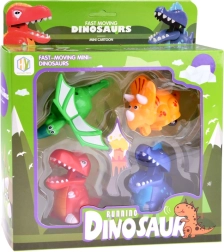 Ein niedliches Set aus vier fahrenden Dinosauriern erfreut jeden kleinen Urzeit-Fan. Die Figuren aus hochwertigem Kunststoff fahren nach dem Drücken eines bestimmten Elements von selbst los. In der Packung finden Sie einen roten T‑Rex, einen grünen Pterodaktylus, einen orangen Triceratops und einen blauen Spinosaurus. Tolle Farben, sicheres Design und ein unterhaltsamer mechanischer Antrieb für stundenlanges kreatives Spiel.