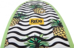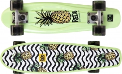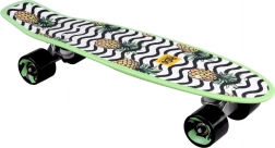 Dieses Skateboard zeichnet sich durch sein lebendiges Erscheinungsbild mit Ananas-Grafik und wellenförmigen schwarzen und weißen Mustern aus, was ein unterhaltsames und auffälliges Design bietet.