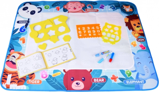 Diese farbenfrohe Matte mit den Maßen 98 x 78 cm hat einen bunten Hintergrund, der jedes Werk in ein gemaltes Meisterwerk verwandelt. Die Ränder der Matte sind mit Tierbildern mit englischen Namen verziert, was es den Kindern ermöglicht, beim Spielen Englisch zu lernen. Das Spiel ist völlig sicher – einfach den Stift mit Wasser füllen und loslegen mit Zeichnen, Malen oder Schreiben.