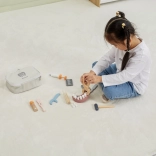 Alles ist in der robusten Tragetasche verstaut, sodass das Set leicht zu transportieren und aufzuräumen ist. Hochwertiges lackiertes Holz und ungiftige Farben sorgen für sicheren, langlebigen Spielspaß. Ein ideales Geschenk für kleine Zahnärztinnen und Zahnärzte.
