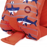 Die leuchtend orange Farbe und der verspielte Print erhöhen die Sichtbarkeit des Kindes im Wasser und fördern die Freude an der Bewegung.