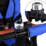 - drehbarer Sitz, 5-Punkt-Gurte, Schutzbügel, klappbares Verdeck mit Netz, Fußstützen, Pedale, Klingel, 2 Körbe, Tasche für Eltern
