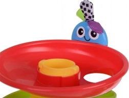Dieses ikonische Spielzeug von PLAYSKOOL verbindet die Faszination rollender Bälle mit einfacher Bedienung. Kinder werfen die Bälle in den Trichter, beobachten ihr Wirbeln und ihr Wiederauftauchen oben, von wo aus sie die Spiralbahn hinabkullern. Rhythmische Bewegungen und leuchtende Farben fesseln die Aufmerksamkeit und fördern die Konzentration.