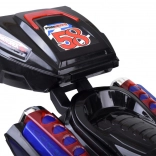 Dieses akkubetriebene Kinder-Motorrad begeistert kleine Fans schneller Maschinen mit sportlichen Linien und reichhaltiger LED-Beleuchtung. Die kompakten Abmessungen eignen sich für Innenräume sowie für befestigte Wege im Hof oder auf der Terrasse. Ein weiches Band auf den Rädern dämpft Vibrationen und reduziert Geräusche.