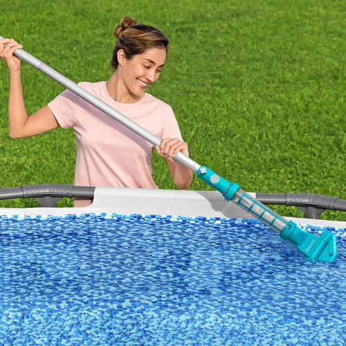 Der kabellose Poolstaubsauger Bestway AquaSurge ist die praktische Lösung für die schnelle und effiziente Entfernung von Sand, Blättern und feinen Verschmutzungen. Dank der Kompatibilität mit Pools bis zu 610 cm Durchmesser ist er ideal für die meisten Gartenpools. Die leichte, dreiteilige Teleskopstange sorgt für komfortreiche Reichweite und einfache Handhabung.