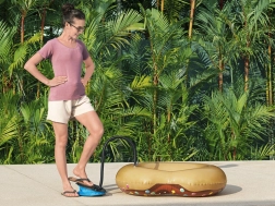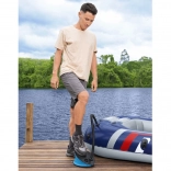 Sie wechseln bequem zwischen dem Modus INFLATE/DEFLATE, sodass Sie Luft nicht nur zuführen, sondern auch schnell ablassen. Die Pumpe lässt sich mit Fuß oder Hand bedienen – die Fußbedienung ist komfortabel und schnell, ideal am Strand, am See oder im Garten.