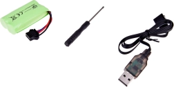 Der 7,4 V 500 mAh Akku liefert genügend Energie für längeren Spielspaß. Laden Sie ihn einfach über das mitgelieferte USB-Kabel auf; ein Schraubendreher erleichtert die Wartung.