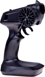 Die ergonomische Pistolenfernsteuerung mit präzisem Abzug ermöglicht sanftes Anfahren, Bremsen und Lenken. Die 2,4 GHz Frequenz erlaubt das gleichzeitige Fahren mehrerer Autos.
