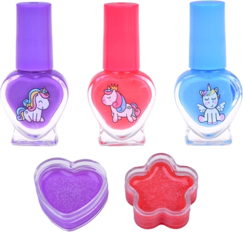 Umfangreiches Zubehör: Das Etui fasst verschiedene Kosmetikprodukte wie Lidschatten, Lipgloss, Nagellacke, Pinsel und Applikatoren. Alle Produkte sind kindersicher und leicht abwaschbar.