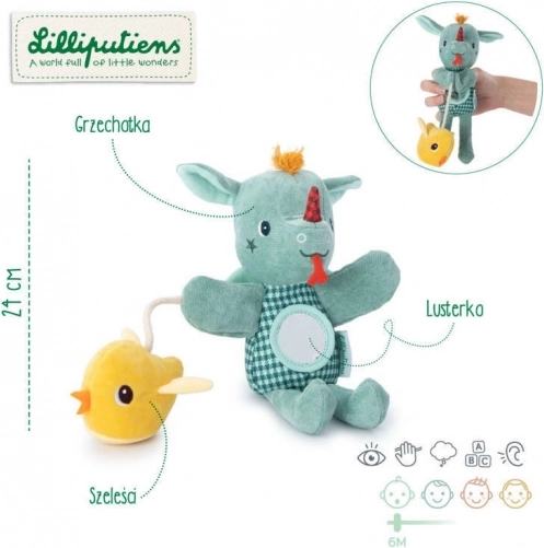 Die niedliche Handpuppe aus der Drache Joe-Kollektion von Lilliputiens weckt die Fantasie und Sinne von Babys ab 6 Monaten. Sie hat Fingeröffnungen für ein einfaches Bespielen, eine im Kopf verborgene Rassel, ein weiches Spiegelchen am Bauch und ein knisterndes Küken an einer Schnur. Die hervorragende Verarbeitung, sichere Materialien und sanften Texturen fördern Feinmotorik, Hand-Auge-Koordination sowie die Wahrnehmung von Geräuschen, Sehen und Berührung.