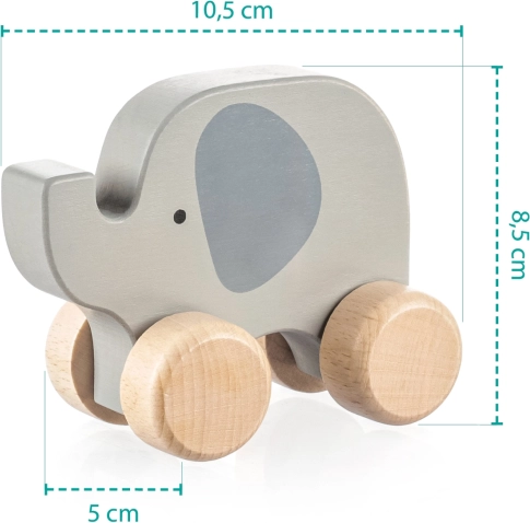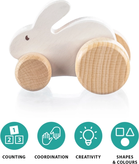 Der holzhoppelnde Hase ist so konzipiert, dass er perfekt in kleine Kinderhände passt. Er besteht aus hochwertigem Naturholz und ist mit wasserbasierten Farben bemalt, die für Kinder sicher sind. Dank seiner robusten Räder bewältigt er spielend Fahrten sowohl auf Teppichböden, als auch auf Holzböden oder sogar auf dem Spielplatz.