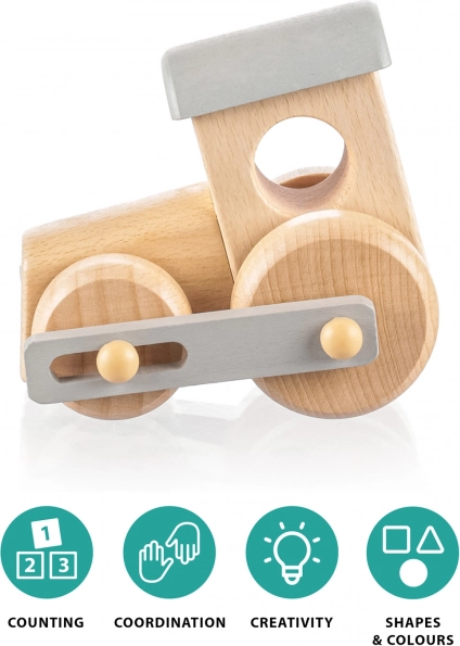 Sie unterstützt außerdem die Entwicklung von Koordination, Kreativität und Fantasie. Die Lok ist leicht und kompakt und lässt sich daher einfach transportieren.