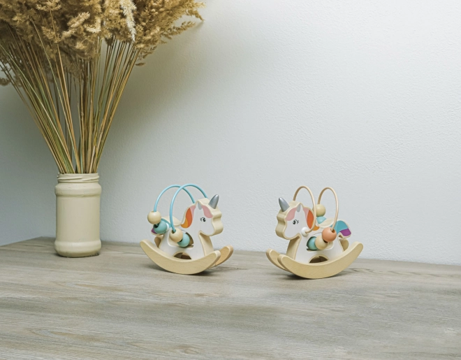 Interaktives Holzspielzeug mit Einhorn, das Kinder stundenlang beschäftigt.