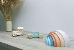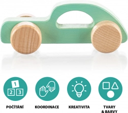 Dieses minimalistische Holzauto in einem sanften Mintton liegt perfekt in kleinen Kinderhänden. Hochwertiges Buchenholz und sichere, wasserbasierte Farben sorgen für Langlebigkeit und Sicherheit beim täglichen Spielen drinnen und draußen.