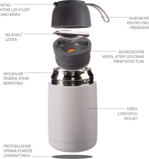 Thermosbehälter für Essen mit Silikonhalter 620 ml, Mountains