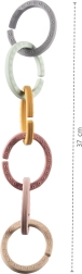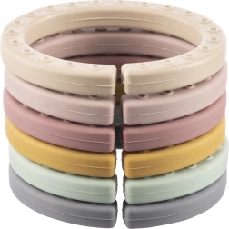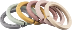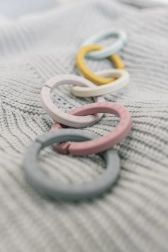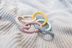 Neben dem Beißring können Sie die Ringe verwenden, um Spielzeug am Kinderwagen zu befestigen oder als Schutz vor Wind mit einer hängenden Windel.