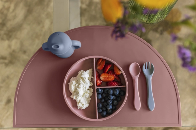 Silikon-Esstisch-Set für Kinder mit Eulenmotiv, 8-teilig, beige