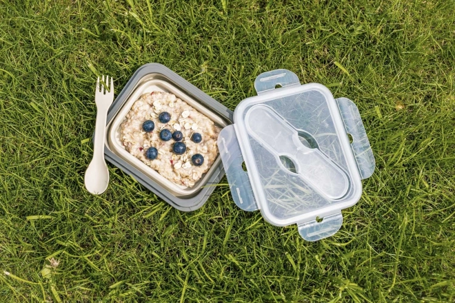 Kleiner Silikon-Snackbox mit Besteck, Senfgelb