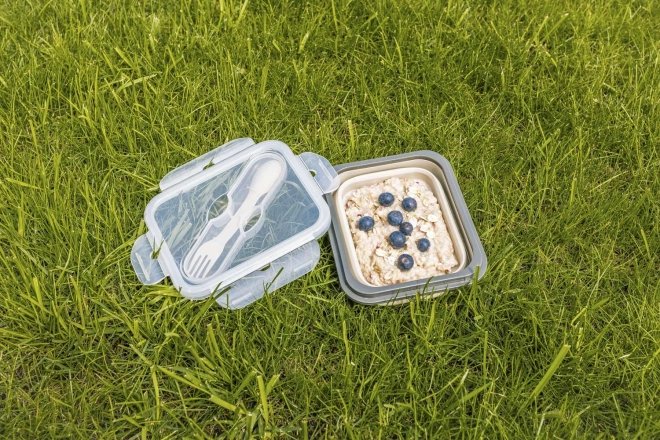 Kleiner Silikon-Snackbox mit Besteck, Altrosa