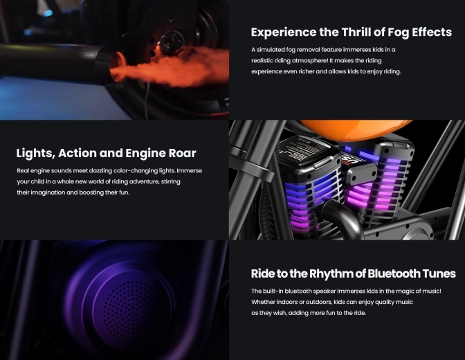 Die simulierte Auspuffrauch-Funktion versetzt Kinder in eine realistische Fahratmosphäre! Dadurch wird das Fahrerlebnis noch intensiver und die Kinder können die Fahrt noch mehr genießen.