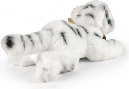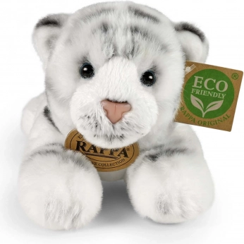 Dieser liegende weiße Tiger der Marke RAPPA ist auf maximale Weichheit und Sicherheit ausgelegt. Durch die Handarbeit wirkt er sehr realistisch und lädt zum Kuscheln und zu kreativem Spiel ein. Die Füllung besteht aus recycelten PET-Flaschen, ist sicher und haptisch nicht von klassischer Füllung zu unterscheiden – schonend für Natur und Kinder.