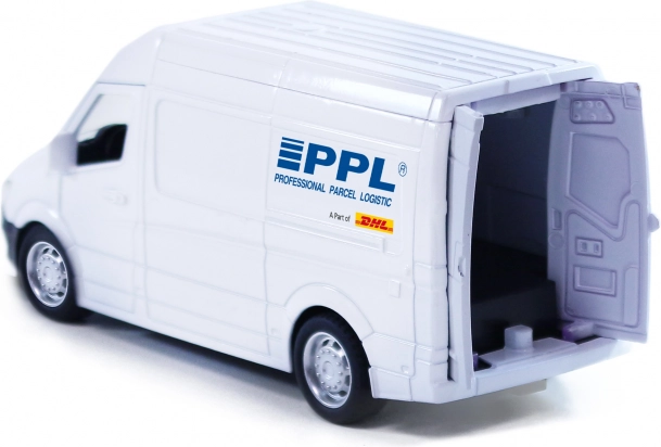 Erweitern Sie Ihre Modellsammlung mit diesem originalen Metalllieferwagen mit PPL-Logo und öffnenden Türen. Perfekt für alle Fans von Modellautos.