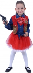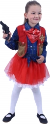 Der rote, voluminöse Rock und das blaue karierte Hemd sorgen für einen unverwechselbaren Western-Look, den Kinder lieben werden.
