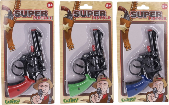 Kapselpistole für Kinder mit bis zu 8 Schuss, ideal für kleine Pistoleros. Erhältlich in drei Farben für unterschiedliche Vorlieben.