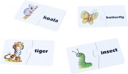 Das Puzzle kombiniert Lernen mit Spaß und hilft Kindern, das Benennen und die Eigenschaften der Tiere besser zu verstehen durch visuelle Assoziationen. Die Illustrationen umfassen farbenfrohe Darstellungen von Tieren wie Koala, Schmetterling, Tiger und Insekten, die Kinder begeistern werden.