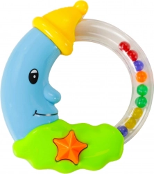 Diese farbenfrohe Rassel in Form eines lächelnden Monds ist das ideale erste Spielzeug für die kleinsten Händchen. Der transparente Ring mit bunten Kügelchen erzeugt beim Bewegen ein angenehmes Geräusch, das die Aufmerksamkeit des Babys weckt und seine natürliche Neugier fördert. Kontrastreiche Farben und ein liebes Design unterhalten und tragen zugleich zur Sinnesentwicklung bei.
