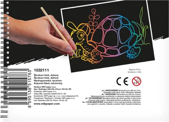Kratzerbild Block bietet Ihnen kreative Möglichkeiten und Spaß. Mit dem beiliegenden Kratzstift erstellen Sie einzigartige, bunte Motive auf jedem der zehn Blätter.