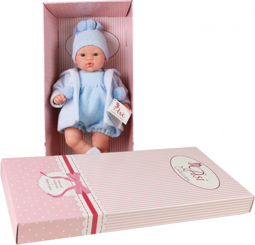 Realistische Puppe Junge Koke 36 cm von ASI. Weicher Stoffkörper, Vinylglieder, braune Augen, Strick-Outfit. Spanische Qualität, Geschenkverpackung, CE.