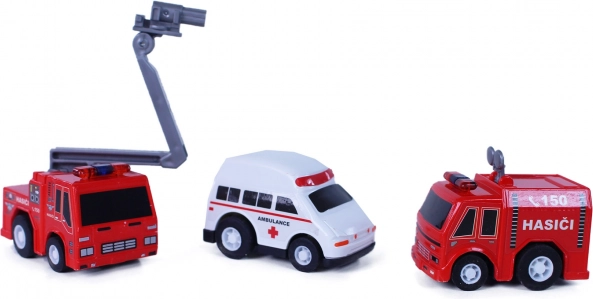 • 3 Mini-Rettungsfahrzeuge mit Rückziehantrieb für dynamische Fahrten.