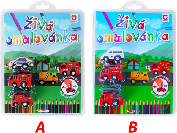 Einzigartiges Spielzeug für kleine Fans der Rettungskräfte: drei Mini-Rettungsfahrzeuge mit Rückziehantrieb und Ausmalbilder zum Ausmalen – kreativer Spaß für zuhause und unterwegs.