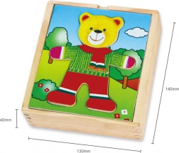 Dieses hölzerne pädagogische Spielzeug bietet die Möglichkeit, sechs Bilder eines niedlichen Bärchens in verschiedenen Stimmungen und Kostümen zusammenzusetzen. Die Hauptvorteile dieses Spielzeugs umfassen nicht nur Spaß, sondern auch die Förderung manueller Fähigkeiten und logischen Denkens sowie das Lernen, Emotionen zu erkennen.
