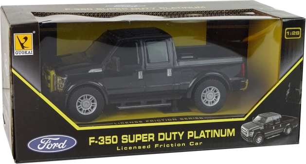 Schwarzes Ford F-350 Pickup-Auto ist ein stilvolles Modell mit originalgetreu gestalteten Details, wie silbernen Karosserieakzenten und getönten Fenstern. Dieses Modell wird sowohl von Kindern als auch von erwachsenen Autofans wegen seines realistischen Designs bewundert.