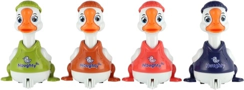 Einfacher Schwungrad-Mechanismus: Drücke den Kopf der Ente und sie fährt ohne Batterien nach vorne los. Toller Spaß und fördert die Motorik.