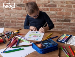 Schaffe Ordnung im Schulranzen mit dem übersichtlichen Federmäppchen BAAGL Roboter. Die 1-fach-Konstruktion mit zwei Klappen bietet ausreichend Platz für Stifte, Buntstifte und weiteres Schulzubehör, während der zuverlässige YKK-Reißverschluss alles sicher verschließt.