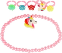 Bringen Sie Spiel und Verkleidung zum Strahlen mit diesem Kinderschmuck-Set, das 5 bunte Ringe und 2 verspielte Armbänder enthält. Ideal für Karneval, Kindergeburtstage und das tägliche Schmücken. Leicht, sicher und für kleine Hände gemacht.