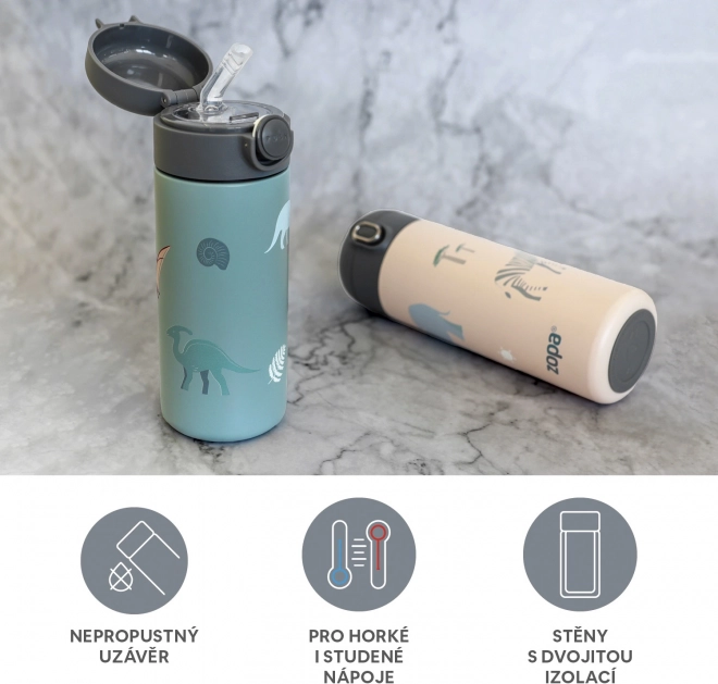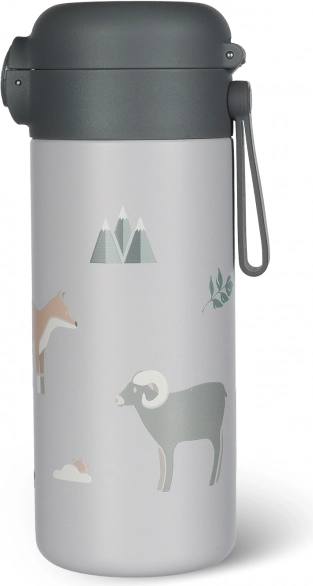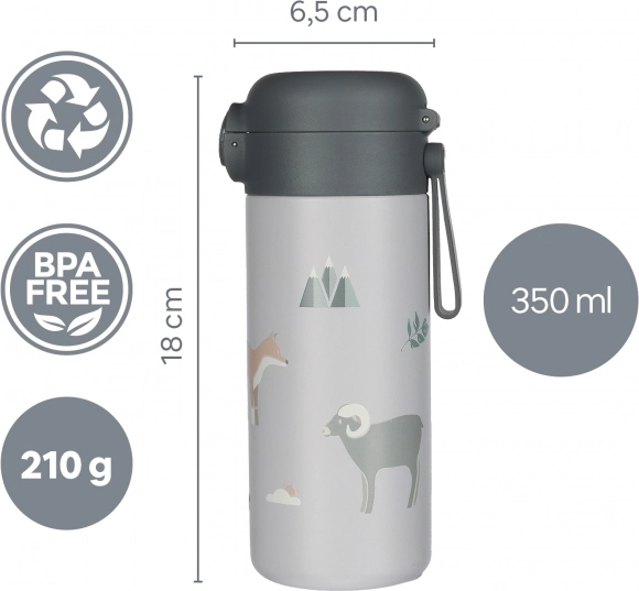 Design-Thermoflasche mit fröhlichen Motiven und einem Volumen von 350 ml, ausgestattet mit einem zuverlässigen, luftdichten Verschluss und einer doppelten Schicht aus hochwertigem Edelstahl, damit Ihr Getränk stets so bleibt, wie Sie es zubereiten – heiße Getränke bleiben bis zu 12 Stunden warm und kalte bis zu 24 Stunden kühl.