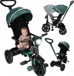 Sobald das Kind wächst, können Sie die Sicherheitsmerkmale entfernen und den Kinderwagen in ein klassisches Dreirad umwandeln, das mit vier melodischen Effekten ausgestattet ist, die von Lautsprechern im Frontlicht ausgestrahlt werden.