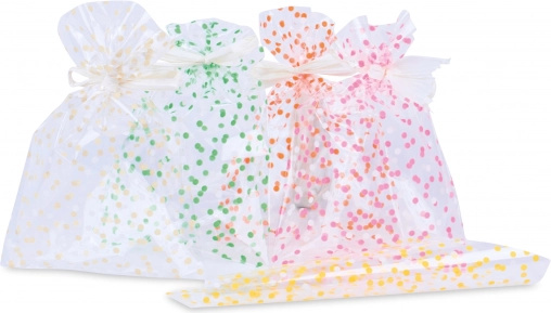 Cellophantüte Punkte ist ideal für Geschenkverpackungen. Diese Tüte hat die Größe 35x50 cm und ist in fünf Farbvarianten erhältlich, was sie zu einer vielseitigen Wahl für jede Gelegenheit macht.