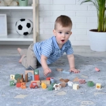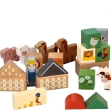 Jeder Baustein ist farbenfroh bemalt und zeigt Motive wie Tiere, Traktoren und Bauernhofgebäude, die das Spiel der Kinder zum Leben erwecken.